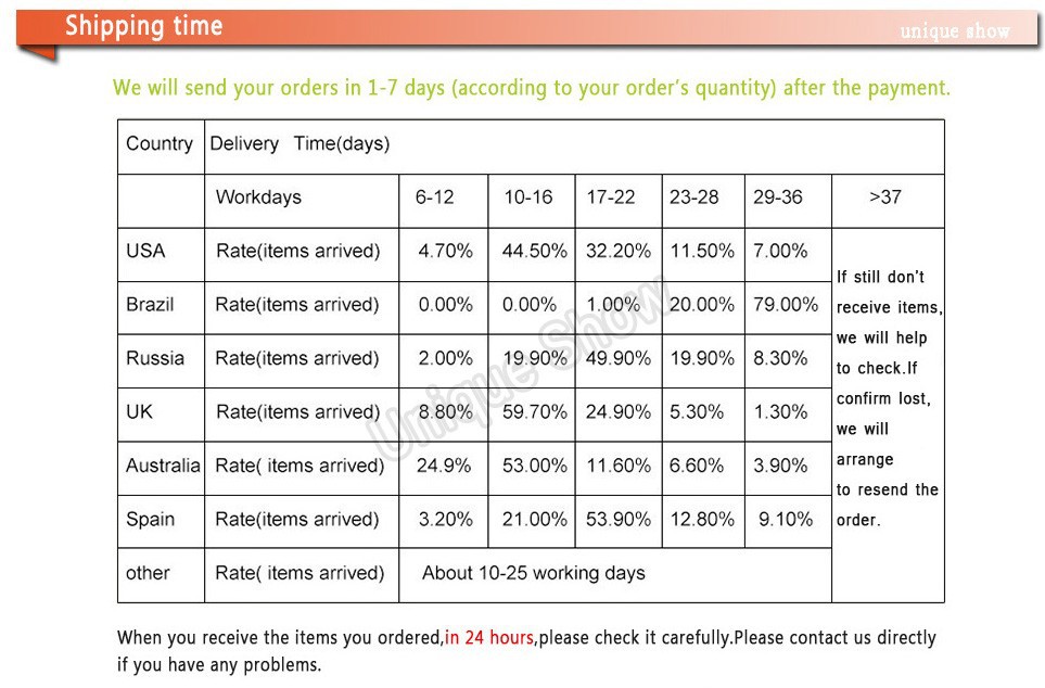 | Seller Service | On-time DeliveryIf you do not receive your purchase within 60 days, you can ask for a full refund before order completion (when you click "Confirm Order Received" or exceed confirmation timeframe). |