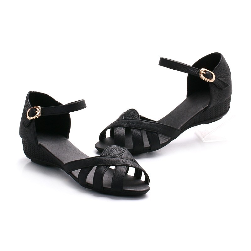 Women s Comfy Flat Sandals Low Heel Ankle Strap Mom s Oxfords Sandals Sexy Cut Out