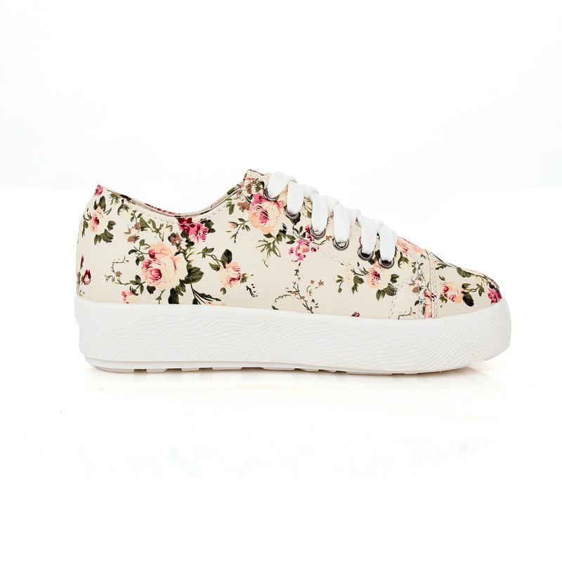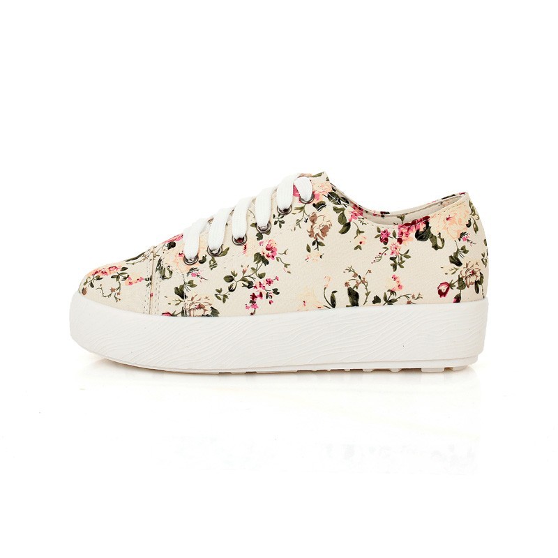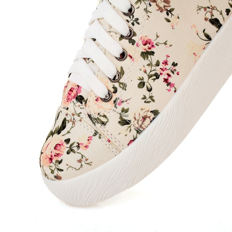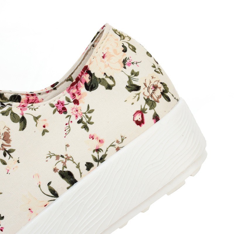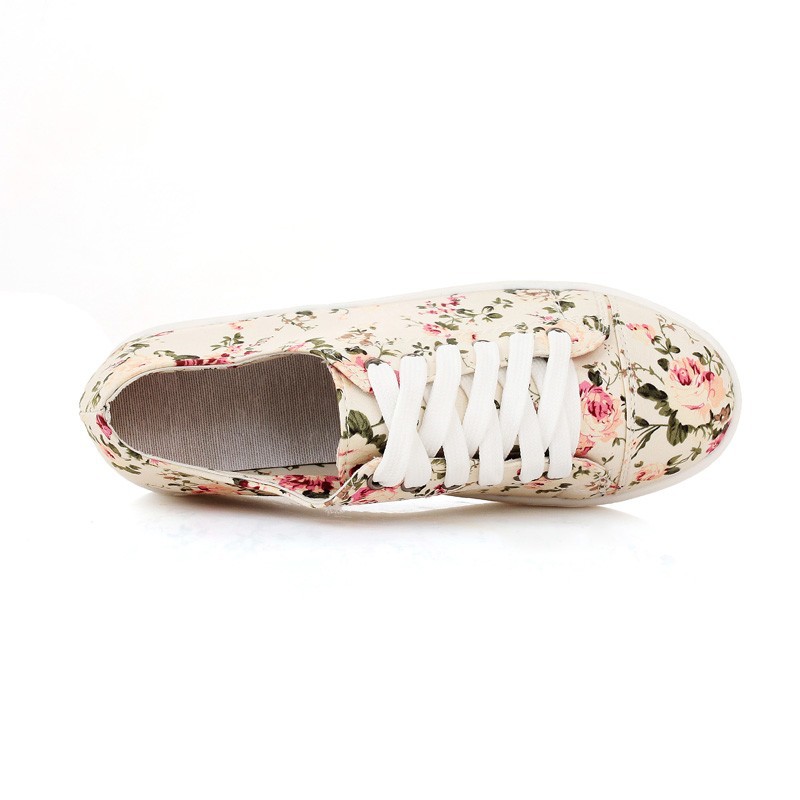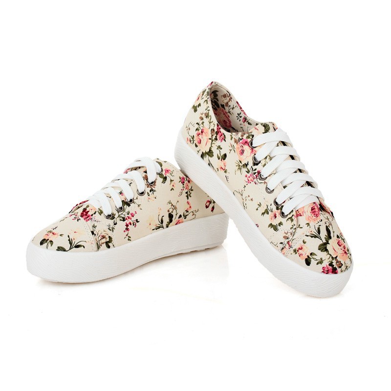 Women’s Floral Canvas Sneakers Lace up Flats Oxfords Girl’s School Shoes Spring ankle boots us size5 6 6.5 7.5 8.5 beige black