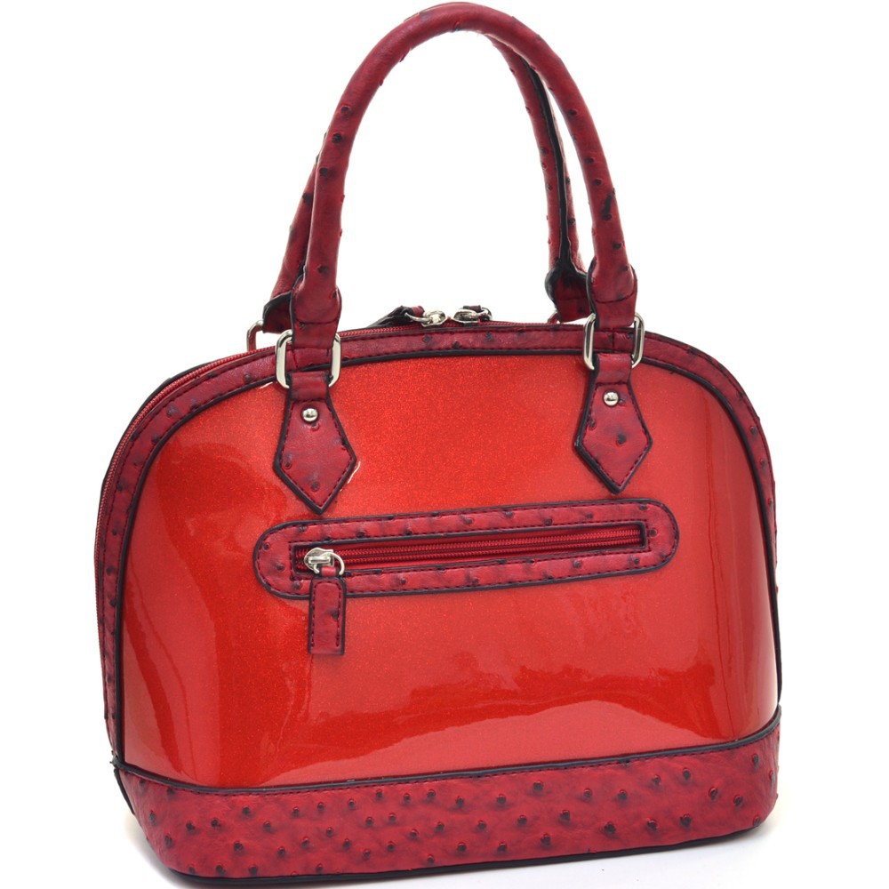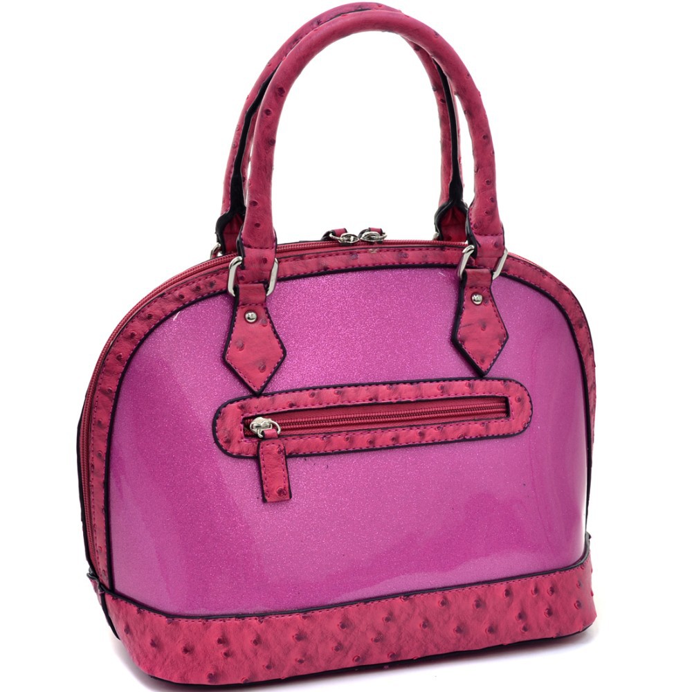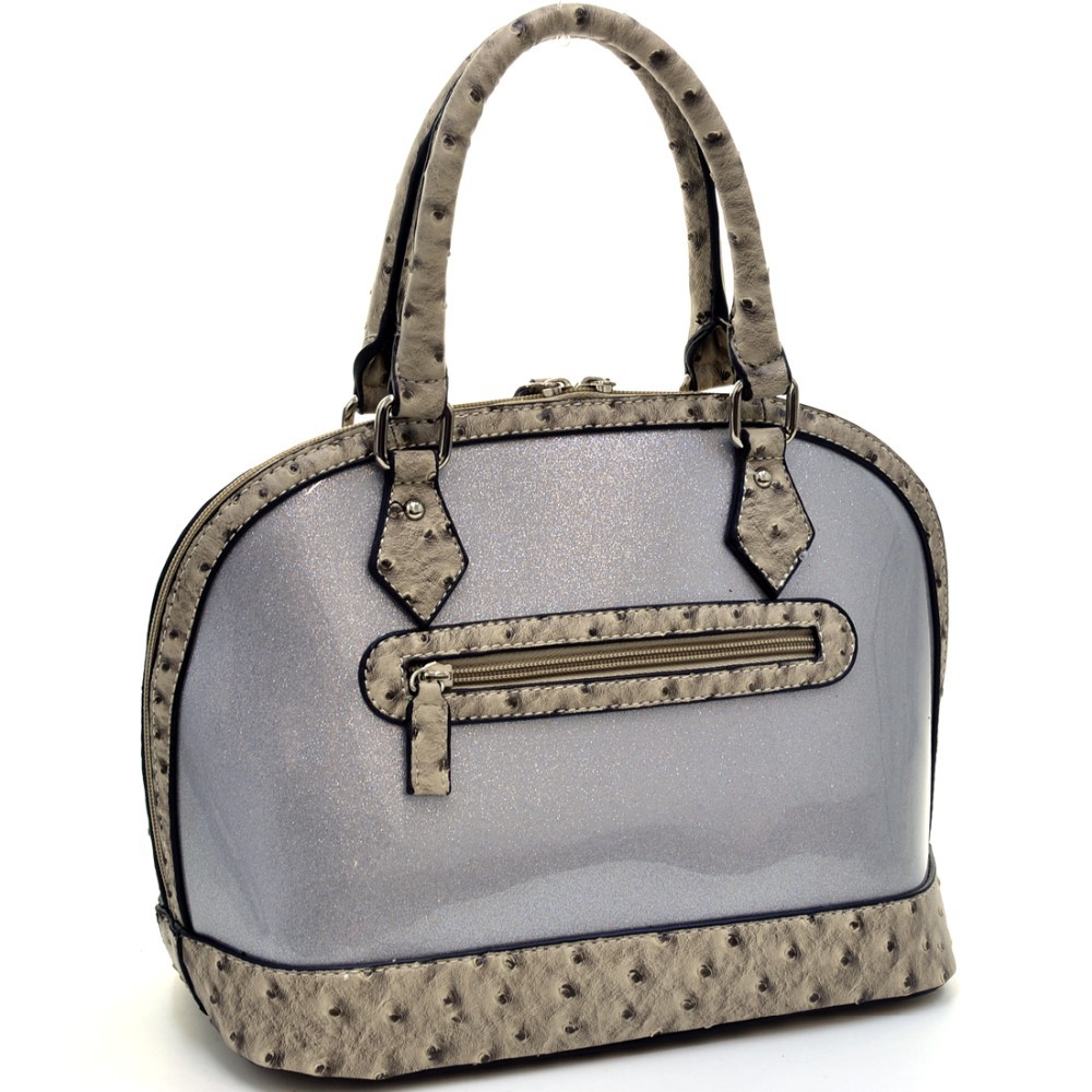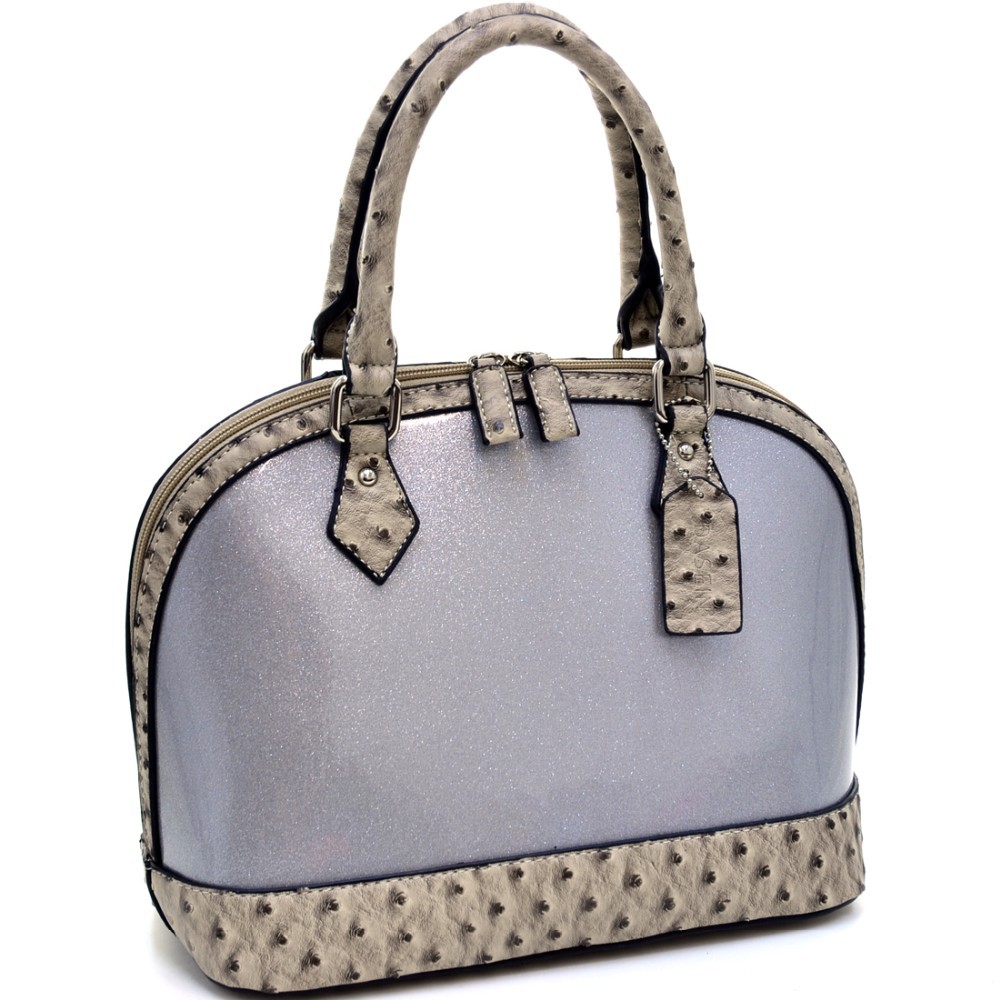 Women’s Glossy Glitter Zip Around Satchel With Ostrich Trim