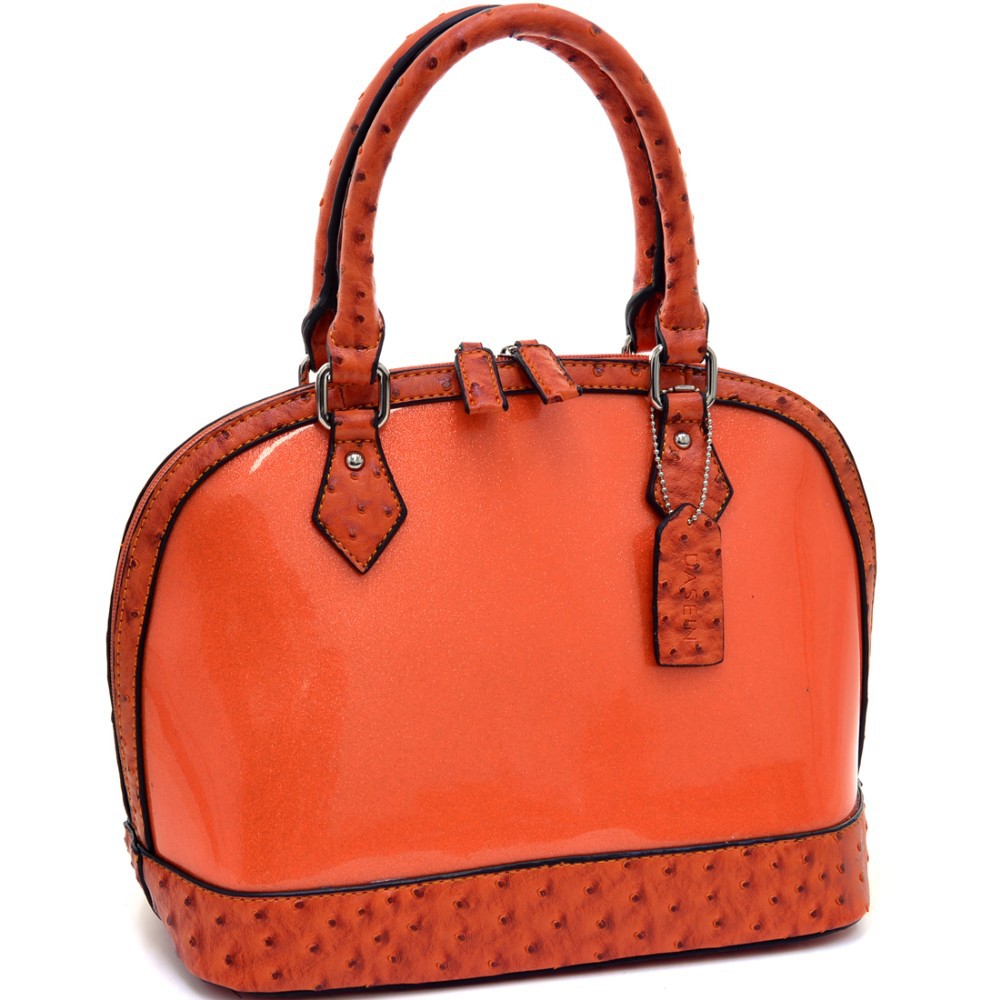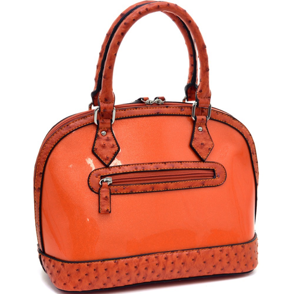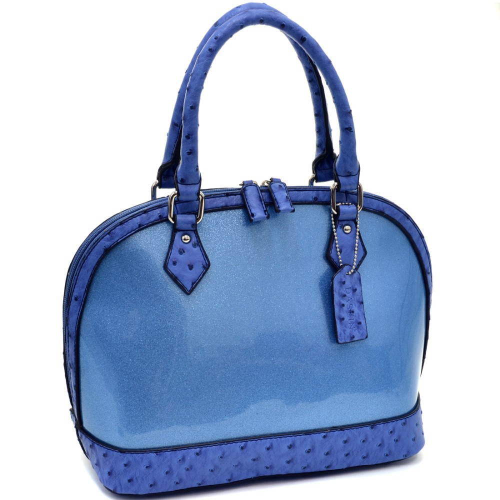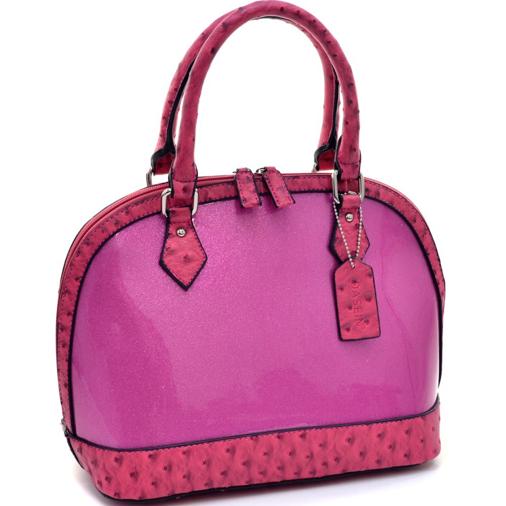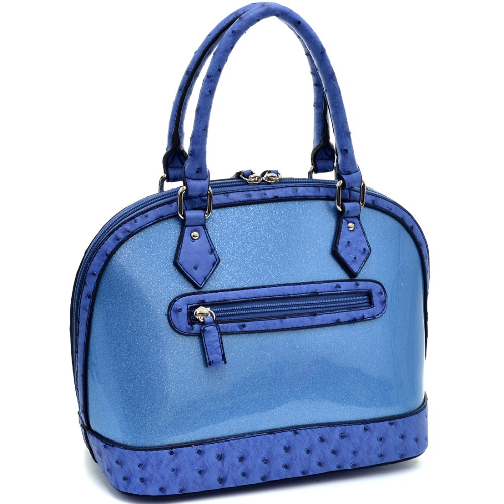 Women’s Glossy Glitter Zip Around Satchel With Ostrich Trim