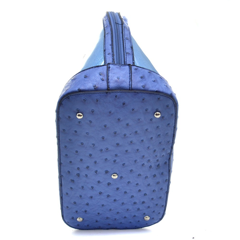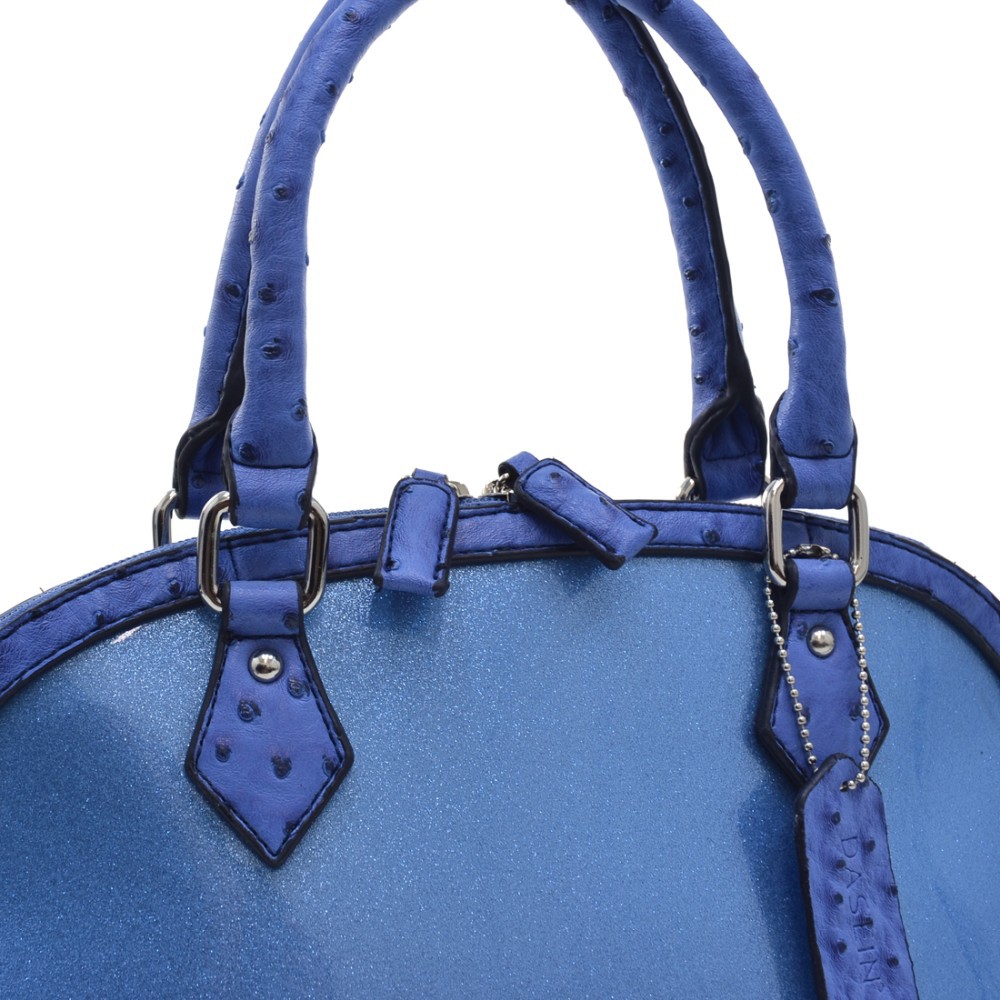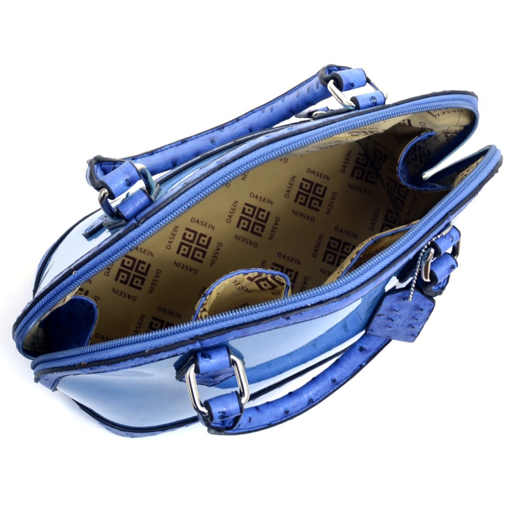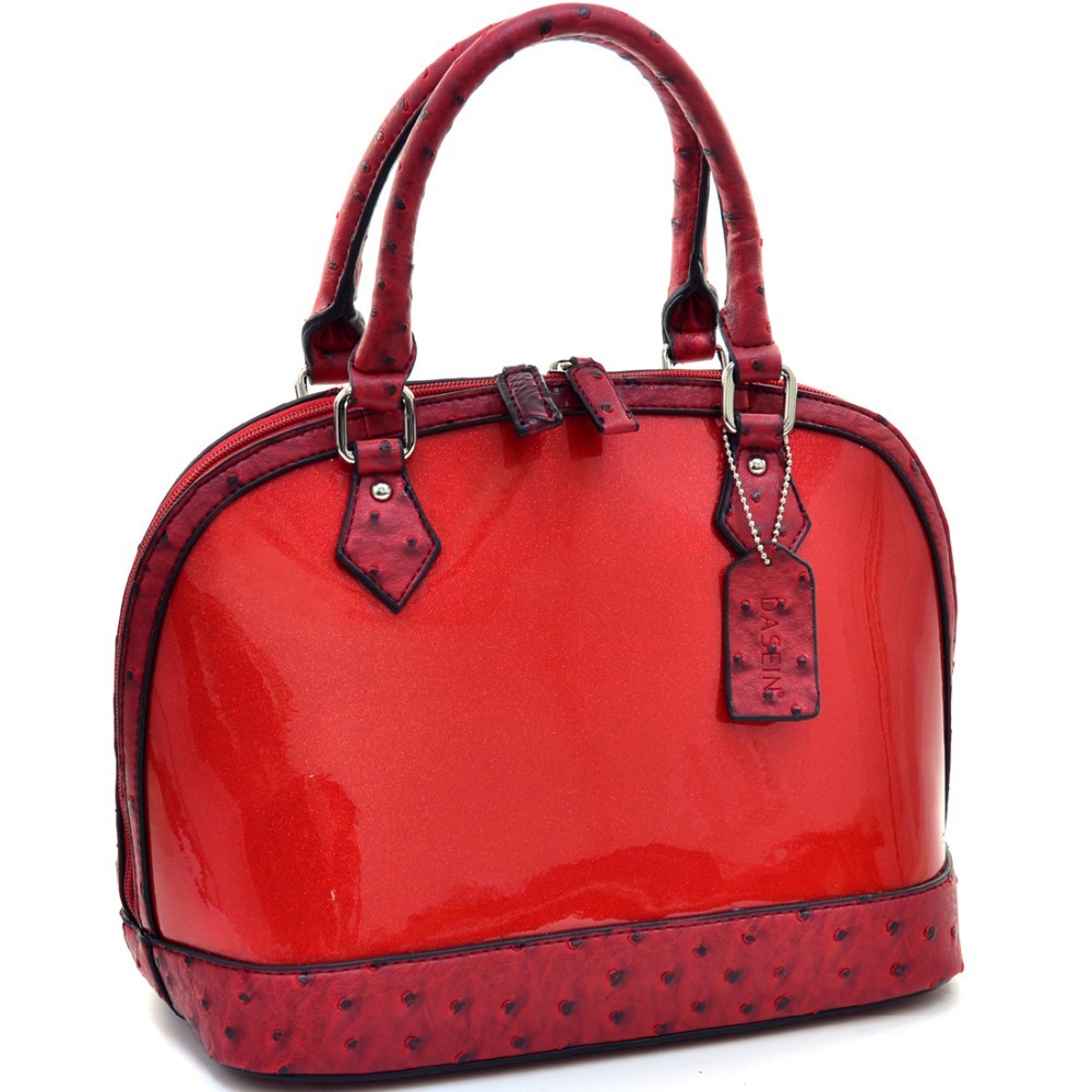 Women’s Glossy Glitter Zip Around Satchel With Ostrich Trim
