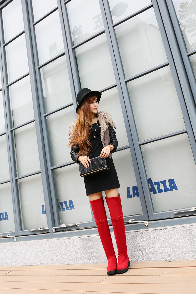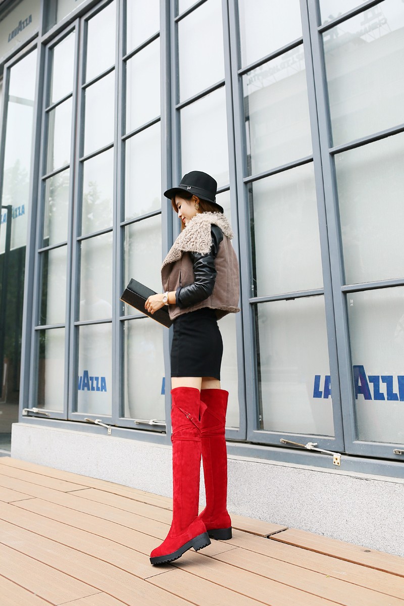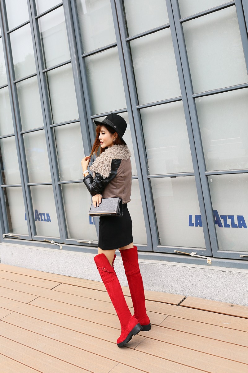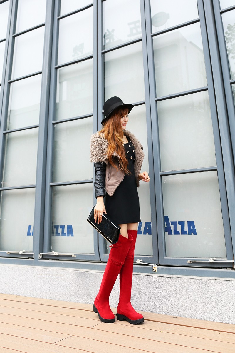 Womens Lace Up Over the Knee Thigh High Boots Mid Heel Oxfords Platform Pumps black/brown/red us4 4.5 5 6 7 8 9