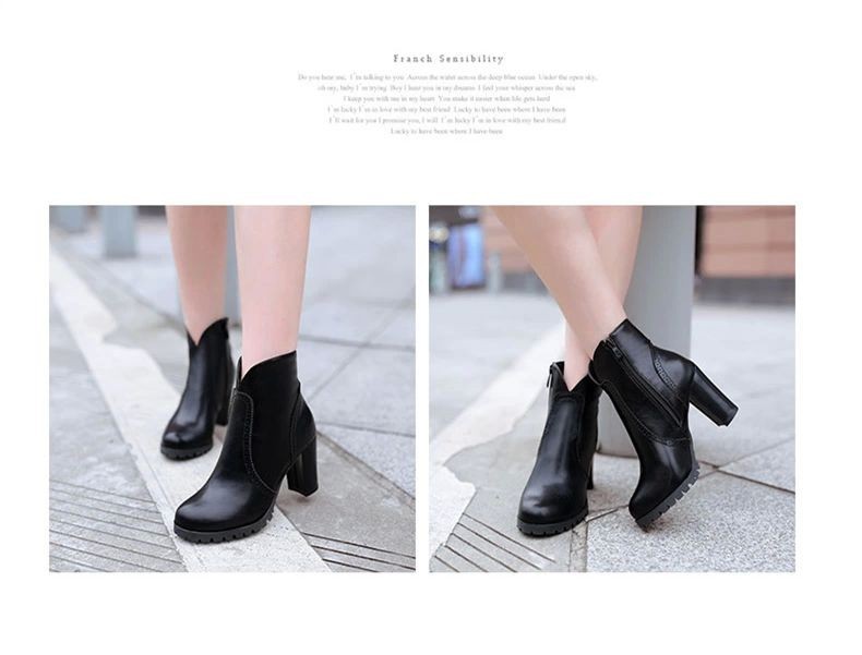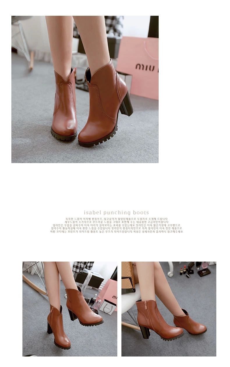 Womens Platform Ankle Boots Chunky High Heels Lace Up Faux Leather Casual Fashion Women’S Winter Shoes 2014 New Wholesales