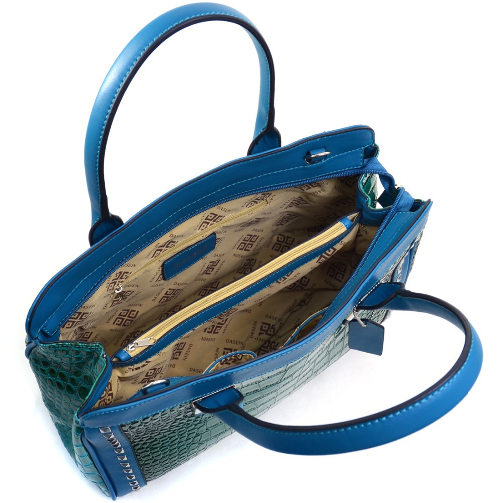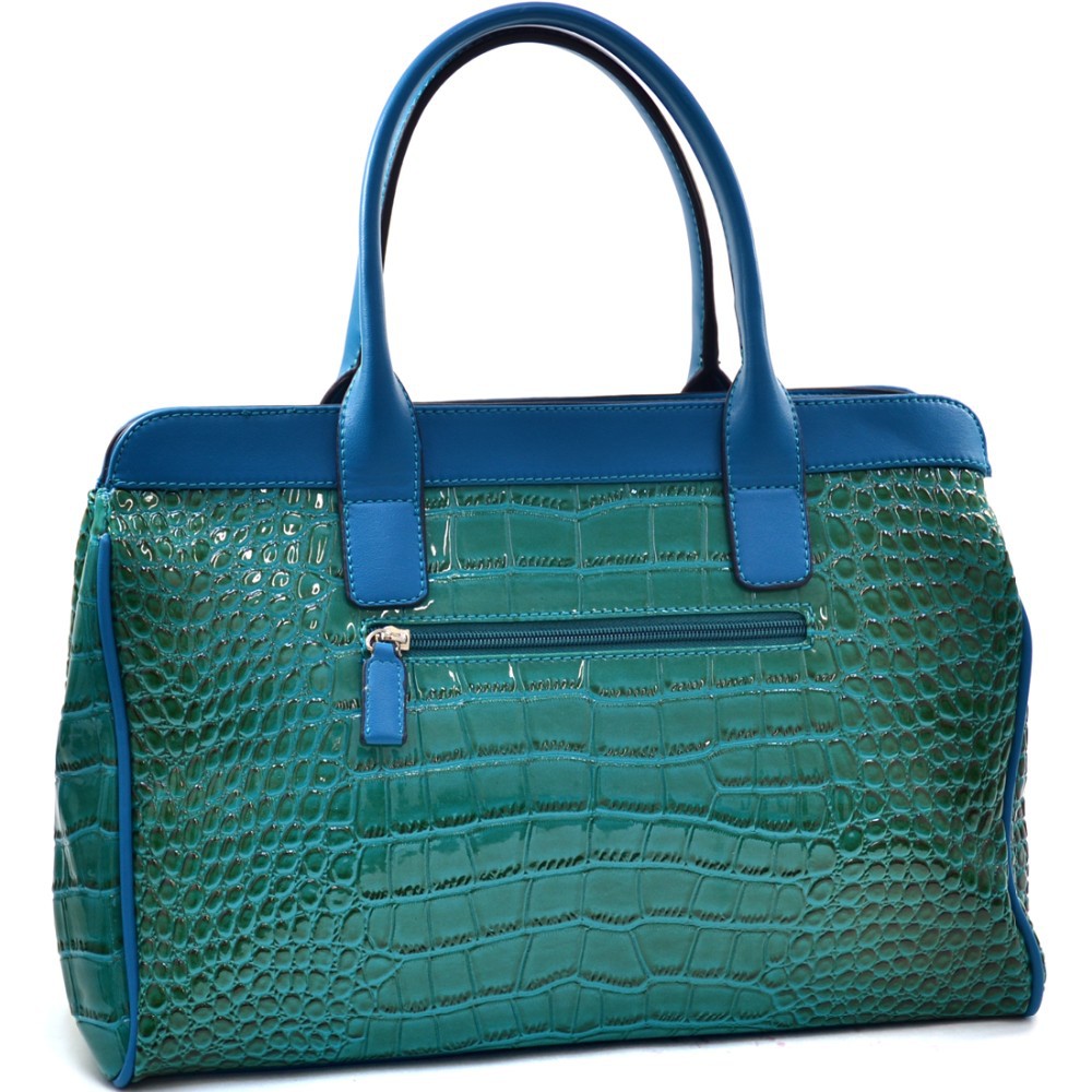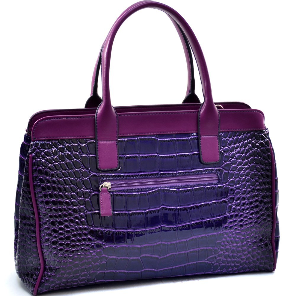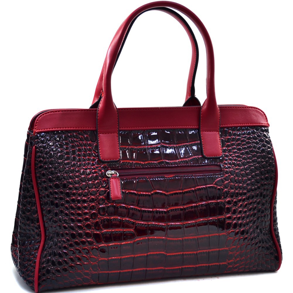 The classic patent croco satchel now features some edgy pyramid studs. This rocker inspired handbag is great for everyday use if you have a lot to carry with you. This satchel is sleek on the outside but is spacious enough on the inside to fit a tablet if you need to stay connected on the go. Included is a 45″ bonus strap for you to wear this bag over your shoulder.