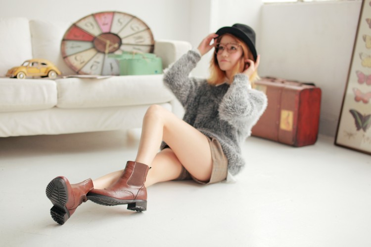 Newest lady s flat boots pointed toe vintage fashion women s martin boots motorcycle shoes mixed