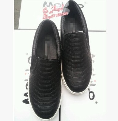 2014 Women’s Snake Loafers Fashion Black and White Plaid Round Toe Slip On Plus Size Fish Skin Comfortable Flat Shoes