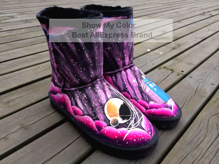 Womens Snow Boots for Winter Doctor Who Hand Painted Waterproof Paints Sheepskin Boots for Snow
