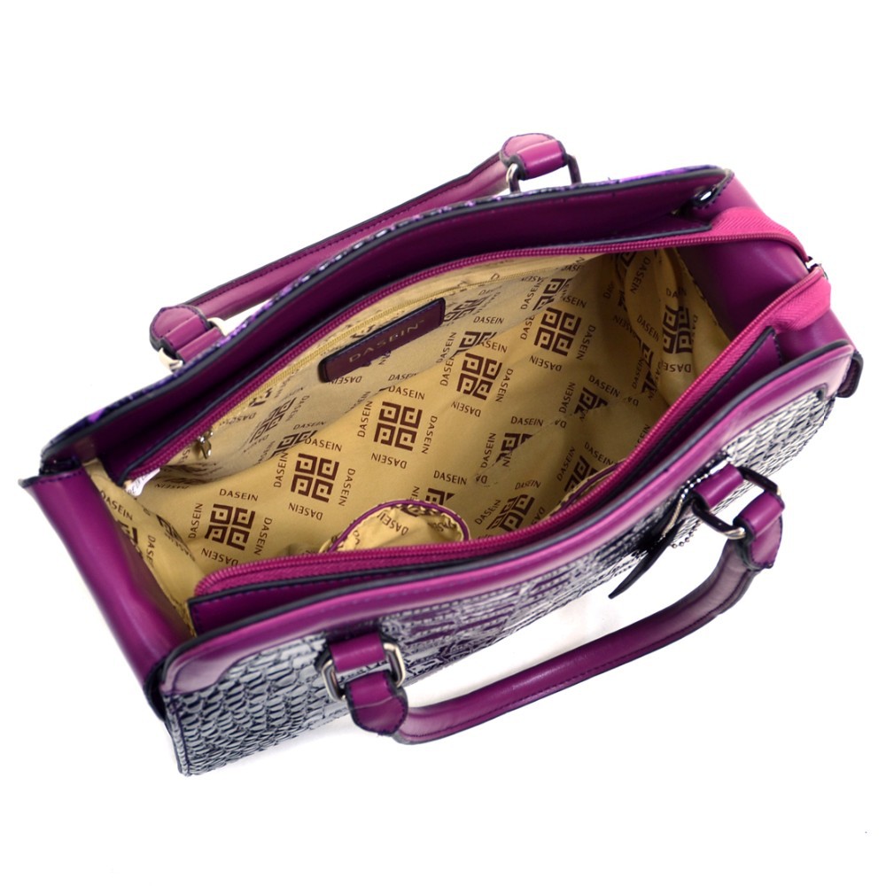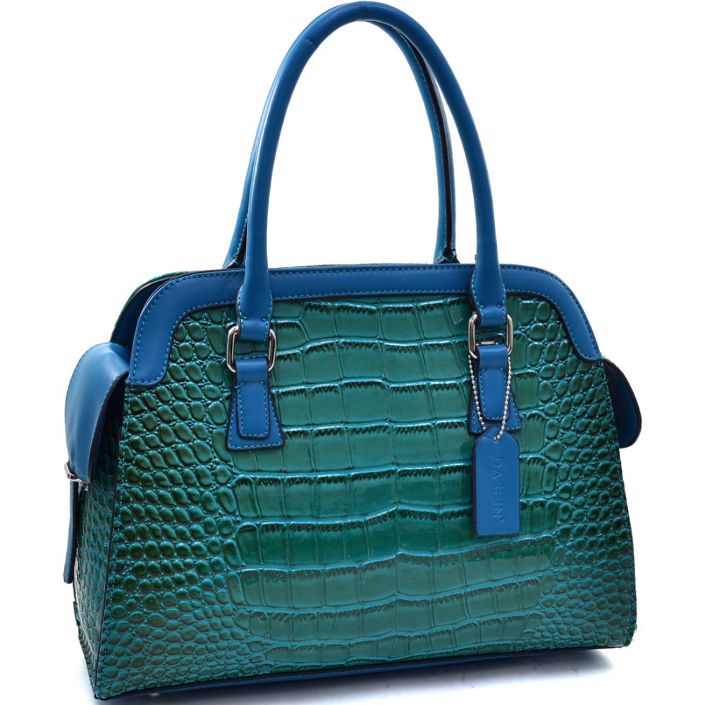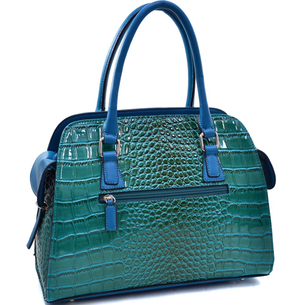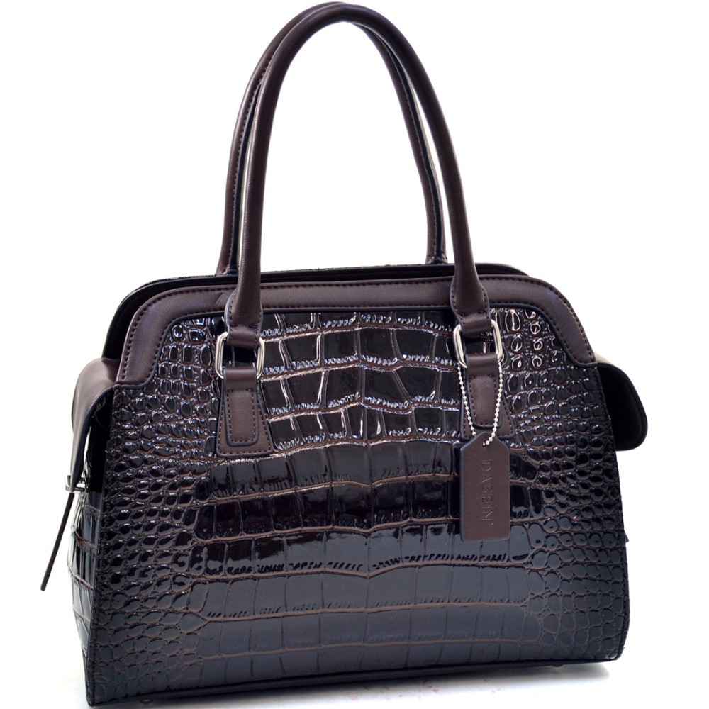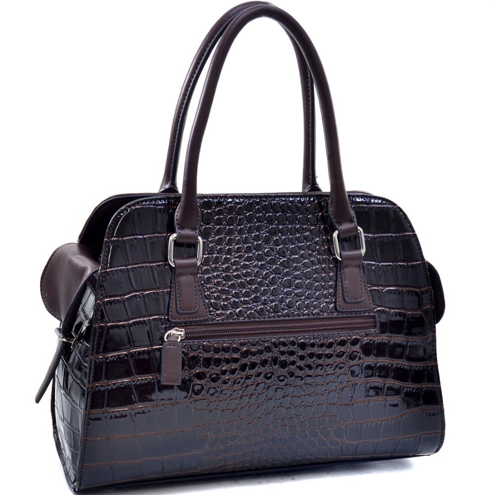 This darling satchel shows off a patent croco faux leather body with a touch of faux leather. A spacious interior and two side exterior pockets helps you keep everything organized. This satchel looks great with any casual attire and on any day out.