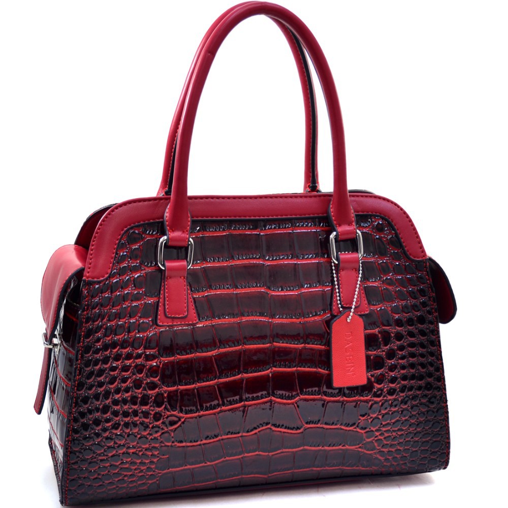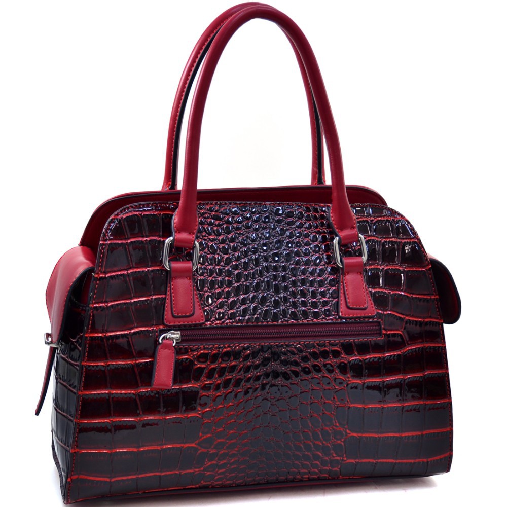 Women’s Tall Patent Croco Satchel With Side Pockets