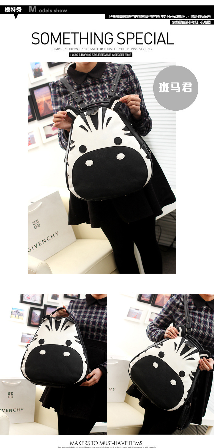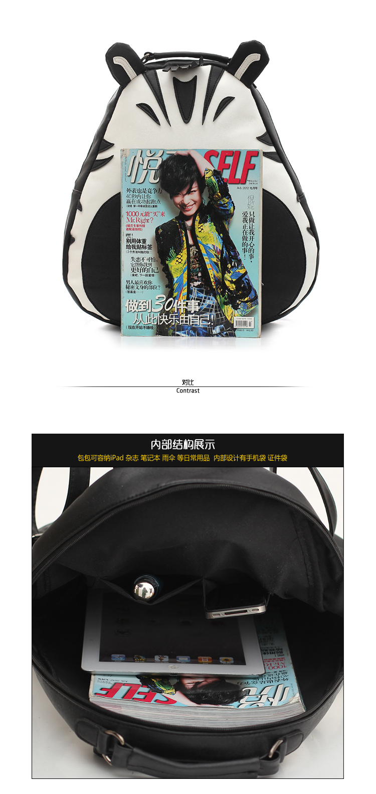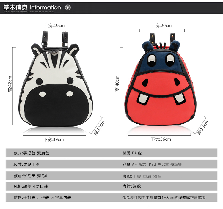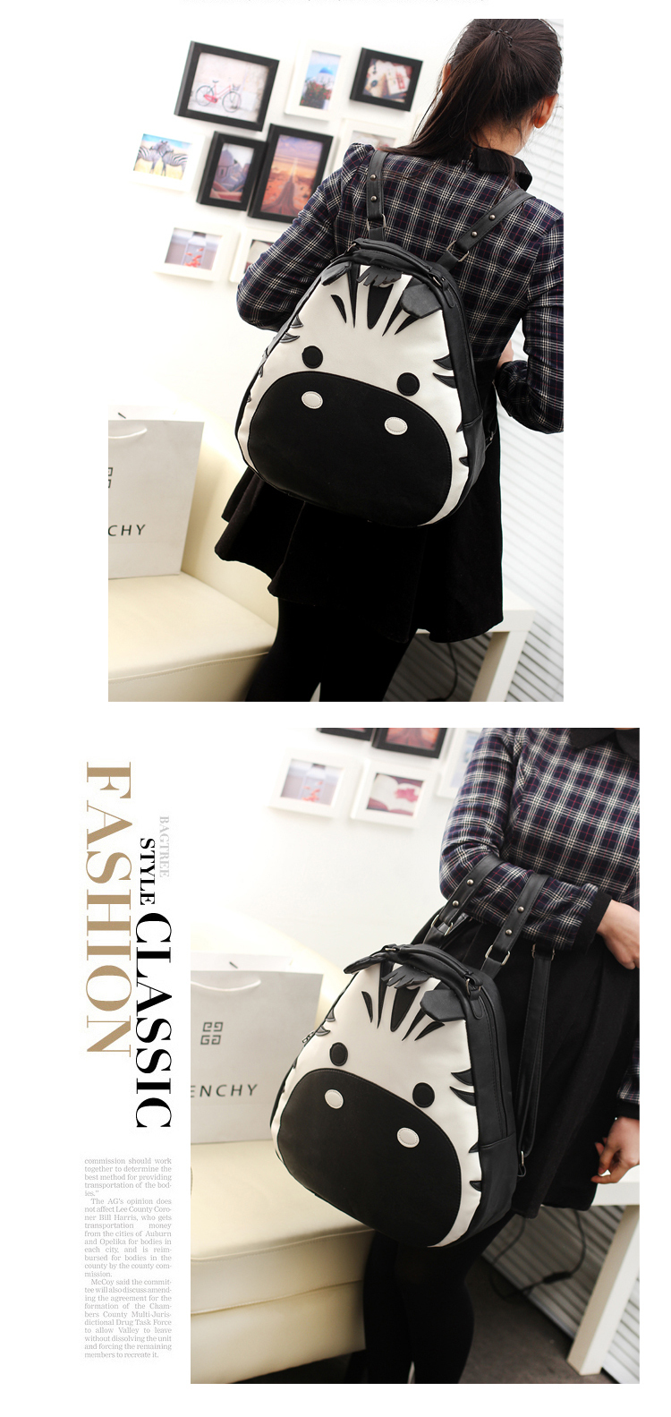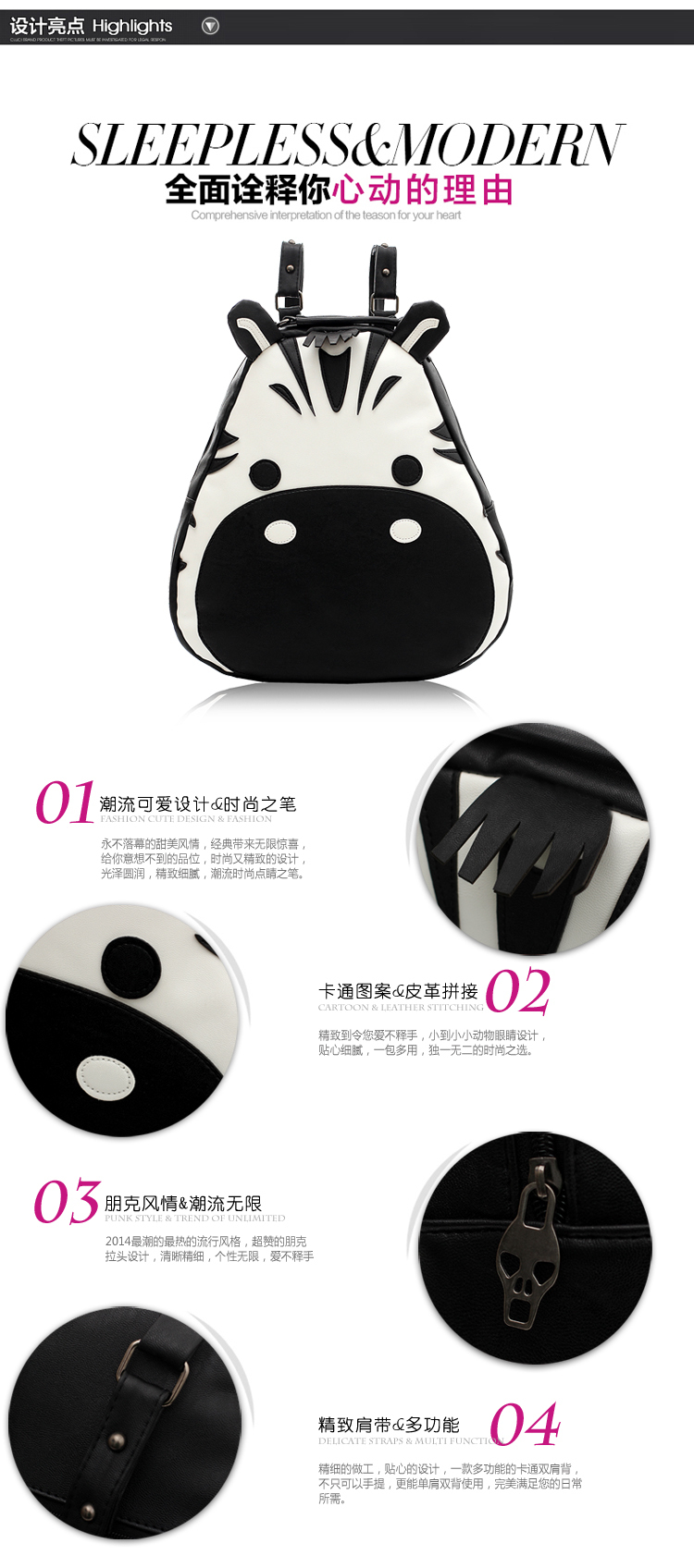 Zebra PU school backpack